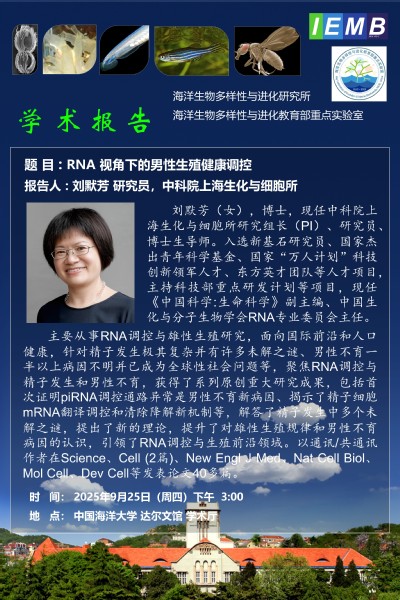报告人:刘默芳 研究员,中科院上海生化与细胞所