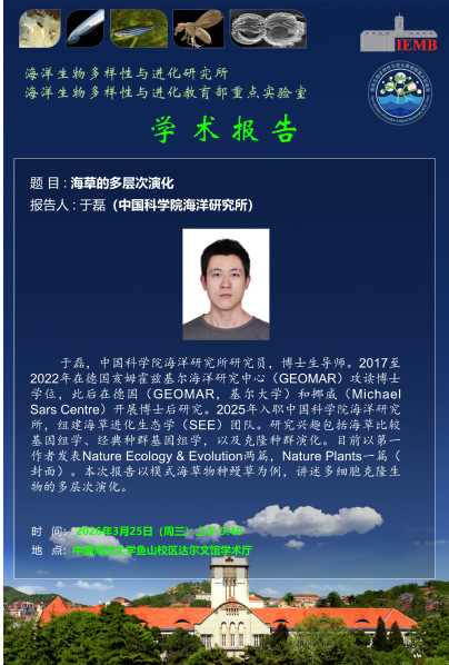 地点:中国海洋大学鱼山校区达尔文馆学术厅