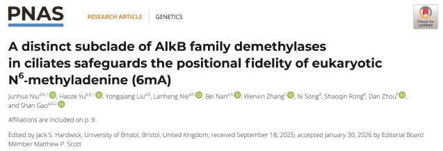 5. Sheng, Y.L., Wang, Y.Y., Yang, W.T., Wang, X.Q. et al. Semiconservative transmission of DNA N6-adenine methylation in a unicellular eukaryote. Genome Research. 2024; 34: 740-756.